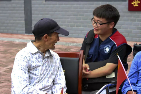 休憩片刻,大家带着事先准备好的慰问品来到了新舟镇养老服务中心。这里的老人平均年龄超过了65岁,其中一位拥有着85岁的高龄。大家先是陪他们欣赏同学们精心准备的文艺节目,接着和他们聊天做游戏,老人们一个个笑逐颜开,愉快地和同学们聊了起来,同学们从简单的问候中开始和老人们宣讲十九大精神以及乡村振兴相关政策,整个大院被淹没在欢声笑语中。