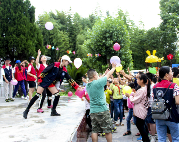“经心筑梦团”在金钟村村干部的带领下,首先来到了新舟镇金群小学。刚到校门口,可爱的小朋友就欢呼雀跃地对我们的到来表示欢迎。和学校的老师对接好后,“经心筑梦团”给金群小学的同学们带来了精彩的演出,炫酷的舞蹈和动听的音乐一下子就让操场热闹起来。表演结束后,大家和同学们一起开展了游戏环节:背对背夹气球、多人跳绳、爱心速递……精彩的游戏不仅给小朋友们带来欢乐,还培养了团队的合作能力。活动最后,“经心筑梦团”与金群小学的同学们合影纪念留下了这美丽的一刻。